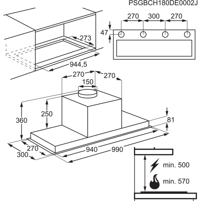 Informations sur le produit "AEG DGE5161HM 7000 groupe d'extraction - 100cm"