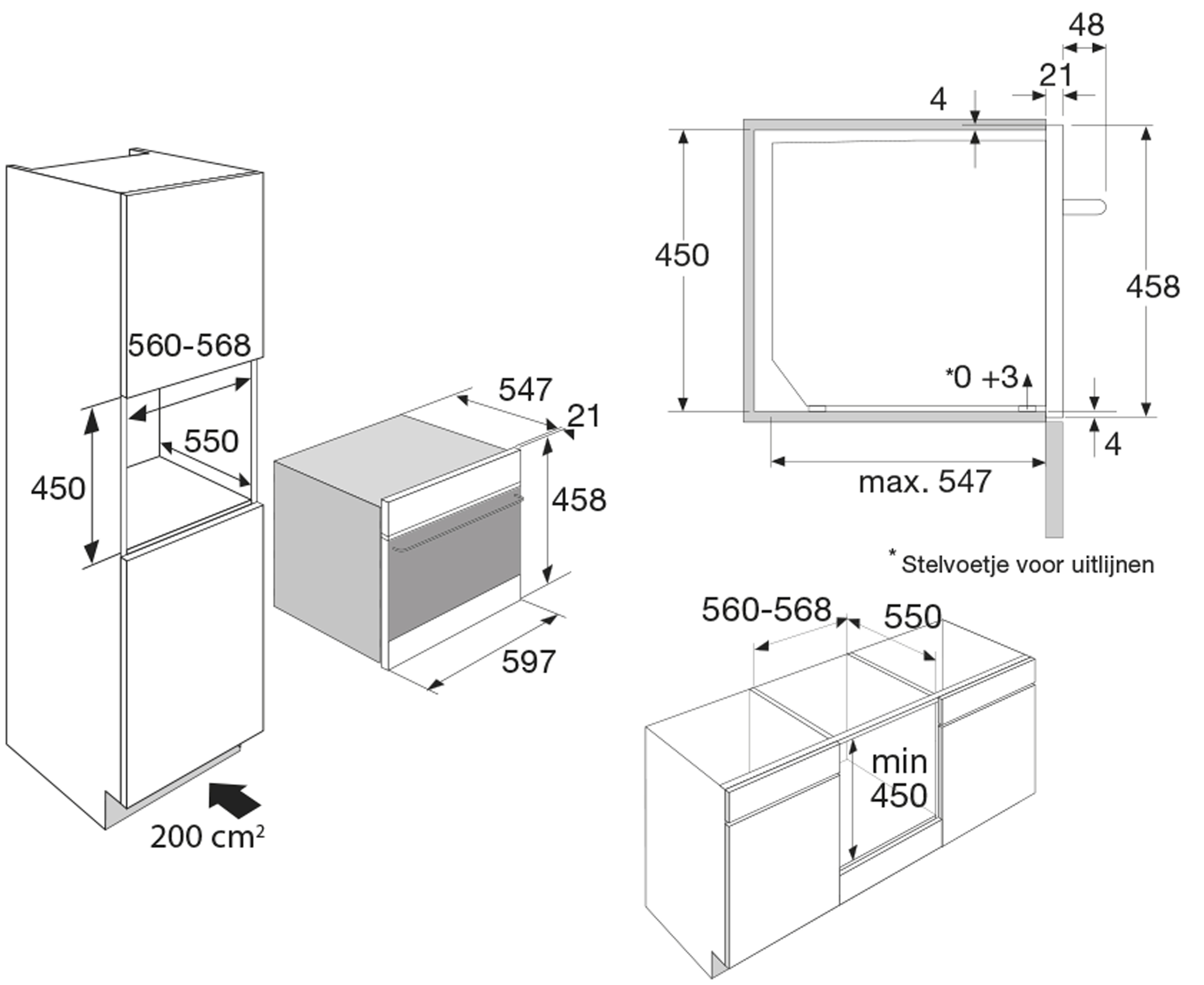 possibilités d’encastrement : dans un meuble colonne, sous le plan de travail