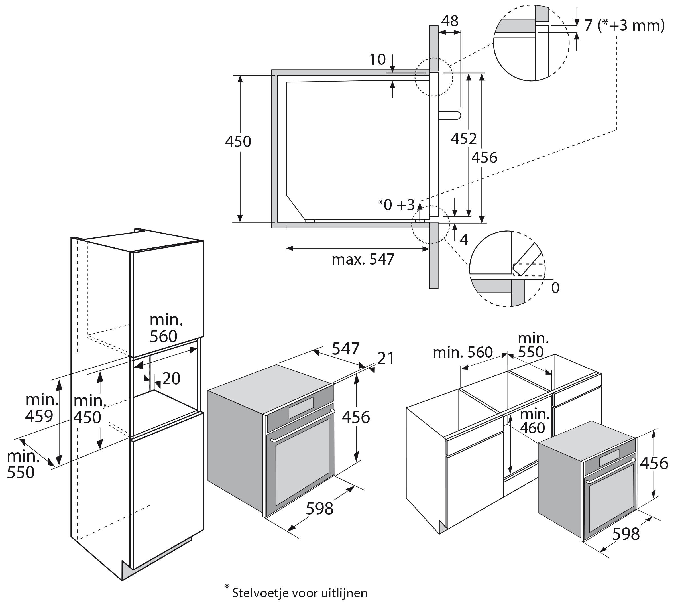 possibilités d’encastrement: dans un meuble colonne, sous le