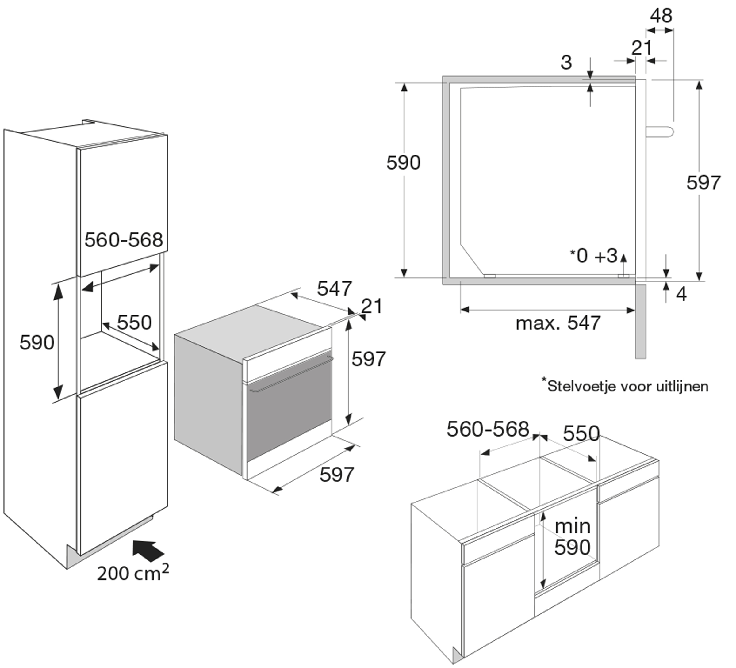 possibilités d'encastrement: en colonne ou sous le plan de travail