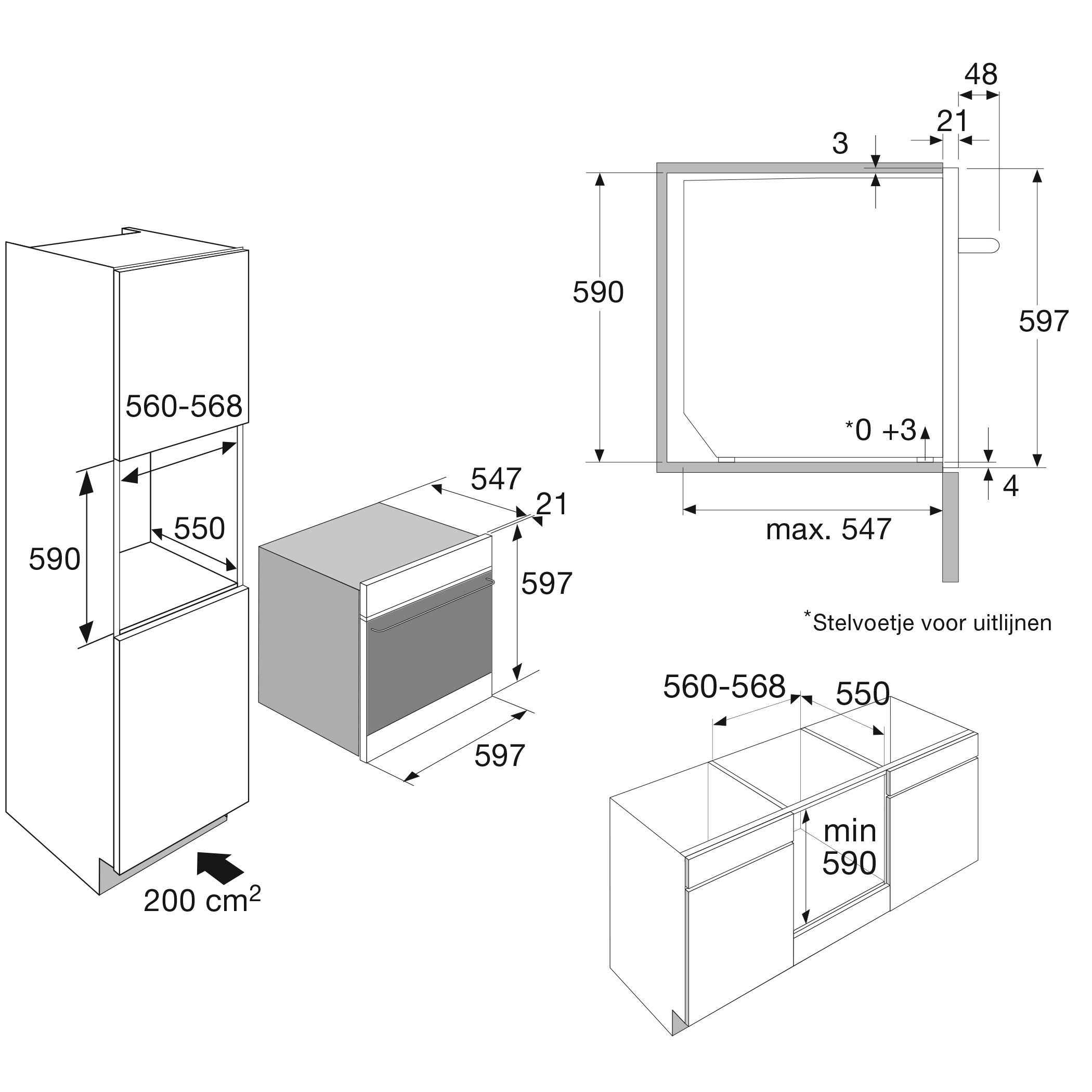 possibilités d’encastrement: en colonne ou sous le plan