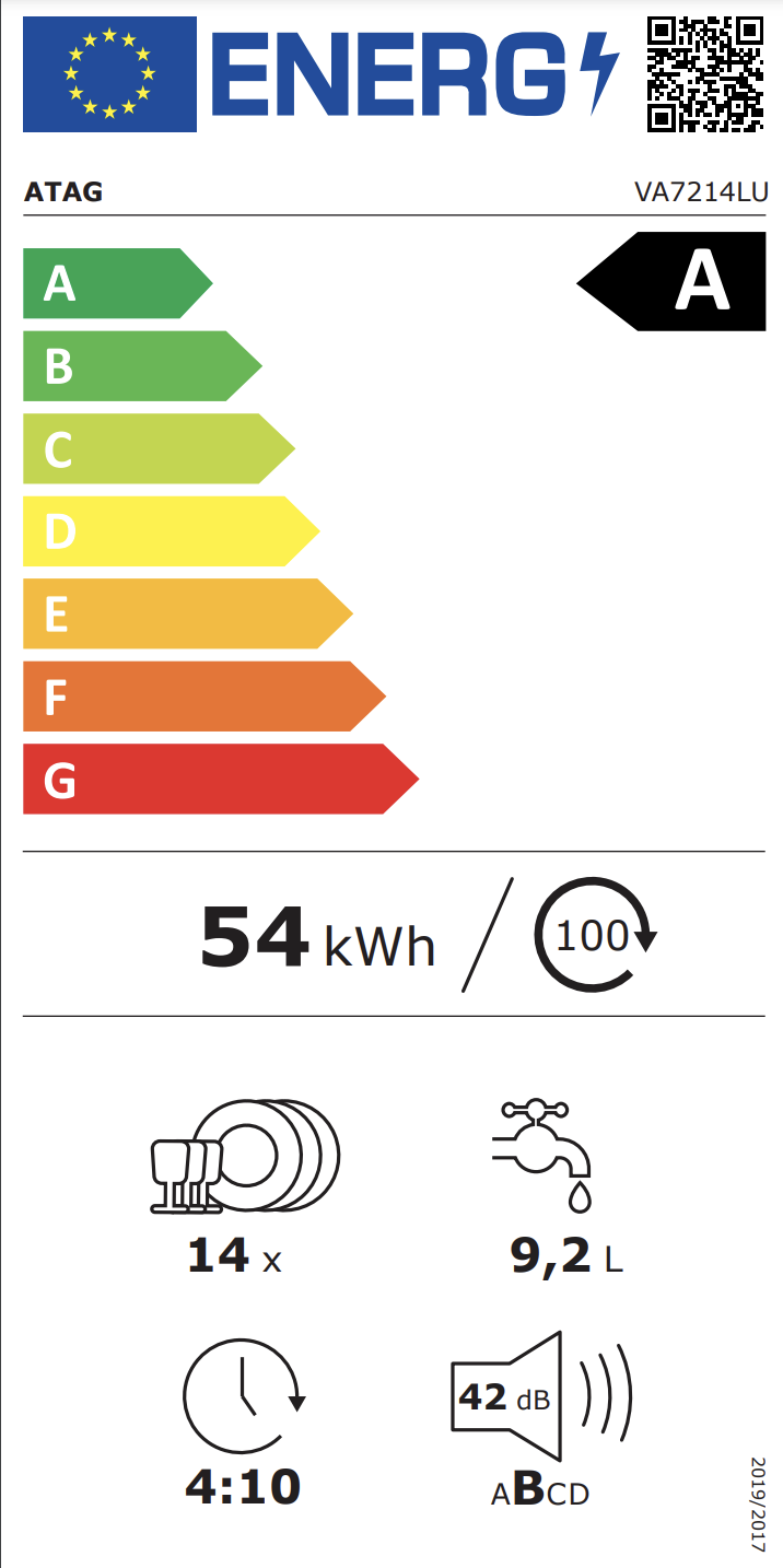 Informations sur le produit "ATAG VA7214LU lave-vaisselle entièrement intégrable"