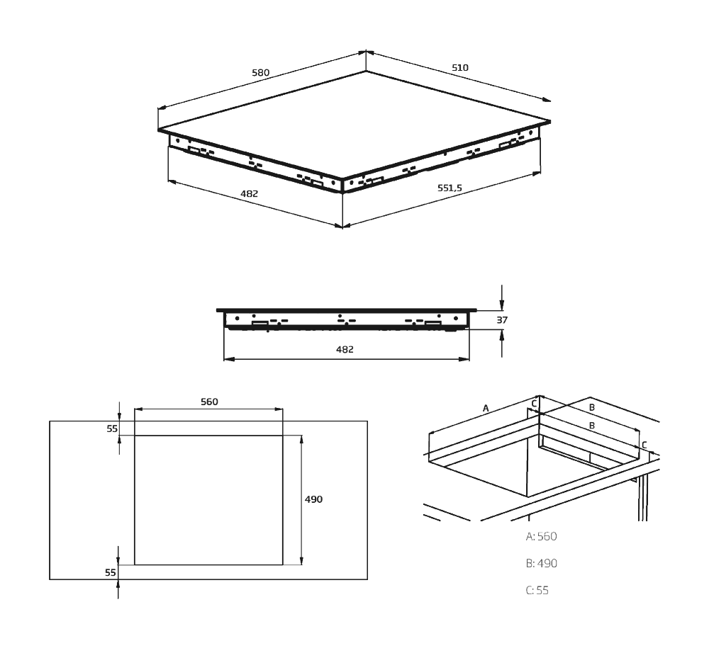 Dimensions (H x L x P): 4.5 x 58 x 51