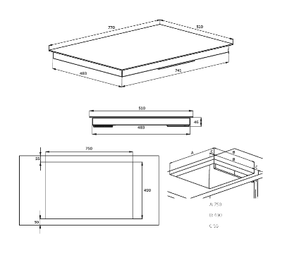 Dimensions niche (B x D): 750 x 490 mm