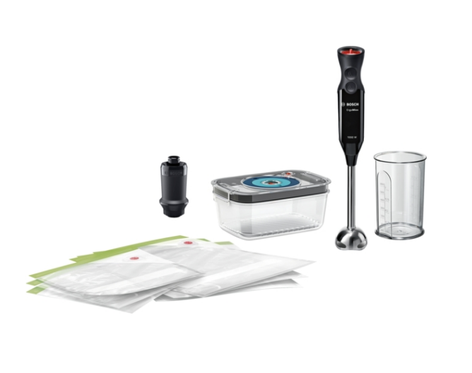 - Pompe de mise sous vide, conteneur de conservation sous vide (1L), sacs de mise sous vide (3x 1,2L et 3x 3,8L).