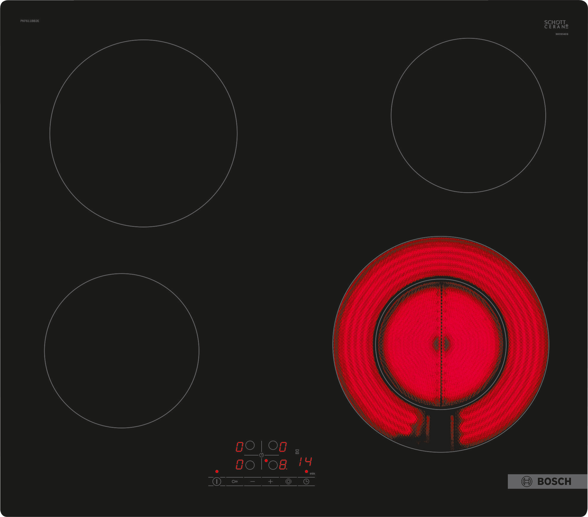 Informations sur le produit "BOSCH PKF611BB2E SERIE 4 table de cuisson vitrocéramique - 60cm"