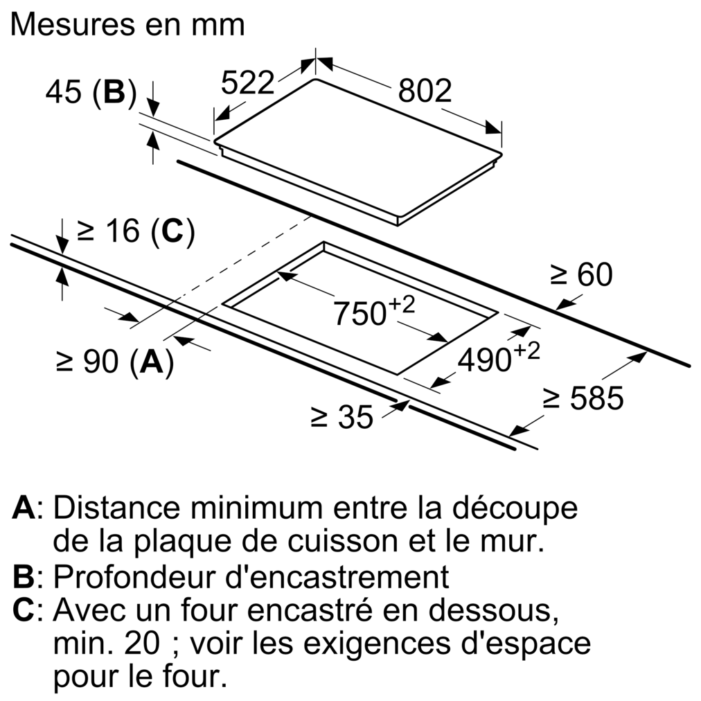 - Dimensions d’encastrement (HxLxP): 45 x 750 x (490 - 490)