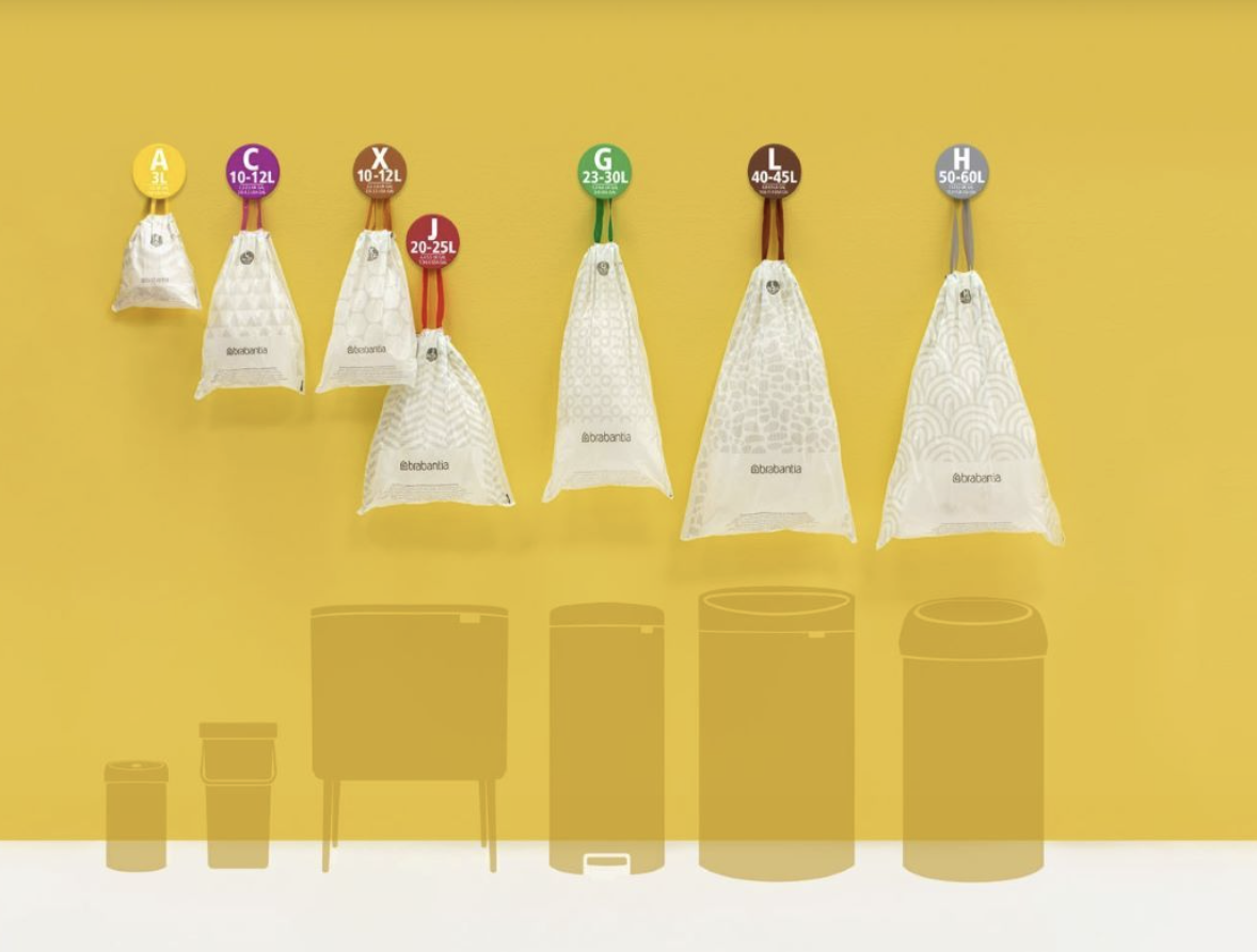 Toujours la bonne taille de sac - code couleur correspondant à votre poubelle Brabantia.