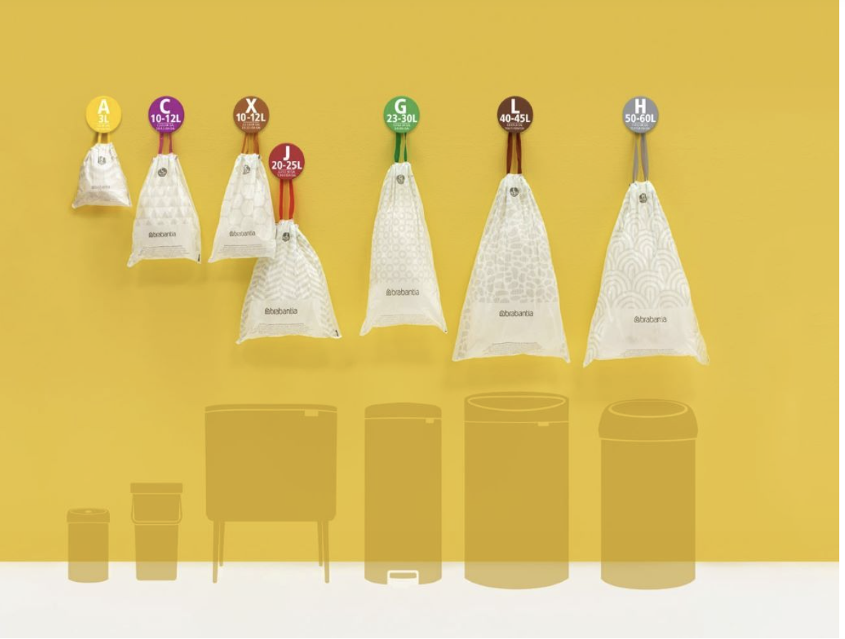 Toujours la bonne taille de sac - code couleur correspondant à votre poubelle Brabantia.