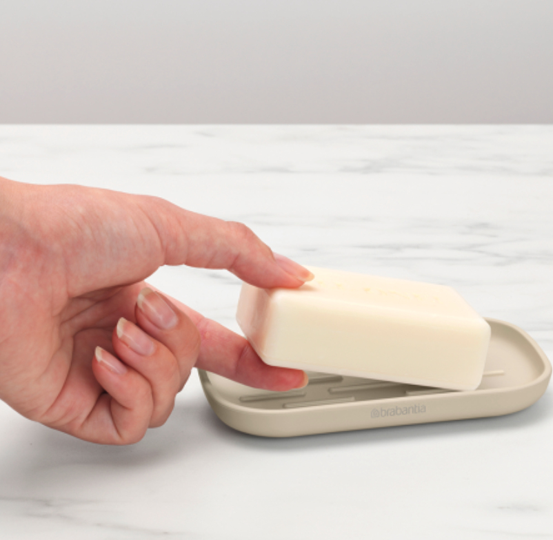 Propre et sec - les rainures surélevées maintiennent le savon hors de l'eau et bien aéré.