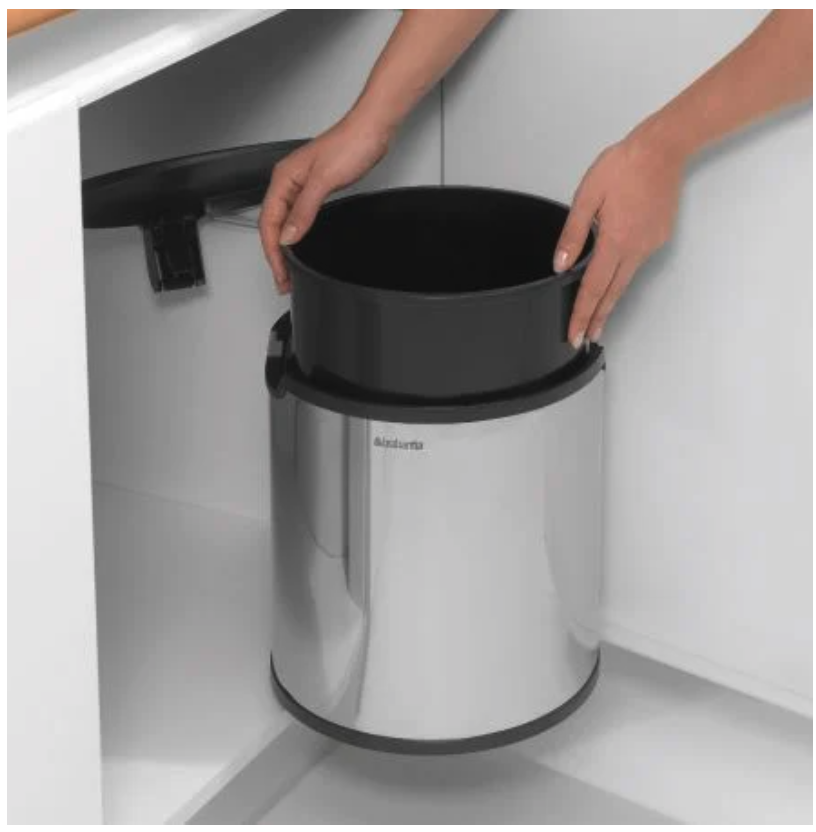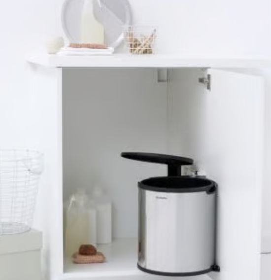Qu'est-ce qui se cache dans le placard ? Vos déchets bien sûr ! Cette poubelle encastrable pratique de 15 litres de Brabantia reste cachée à l'intérieur de votre placard jusqu'à ce que vous ouvriez la porte. Lorsque la porte s'ouvre, elle sort et son couvercle s'ouvre automatiquement. Son ouverture extra grande vous offre un espace suffisamment grand pour vider une pelle à poussière sans en mettre partout. Une poubelle encastrable vraiment pratique !