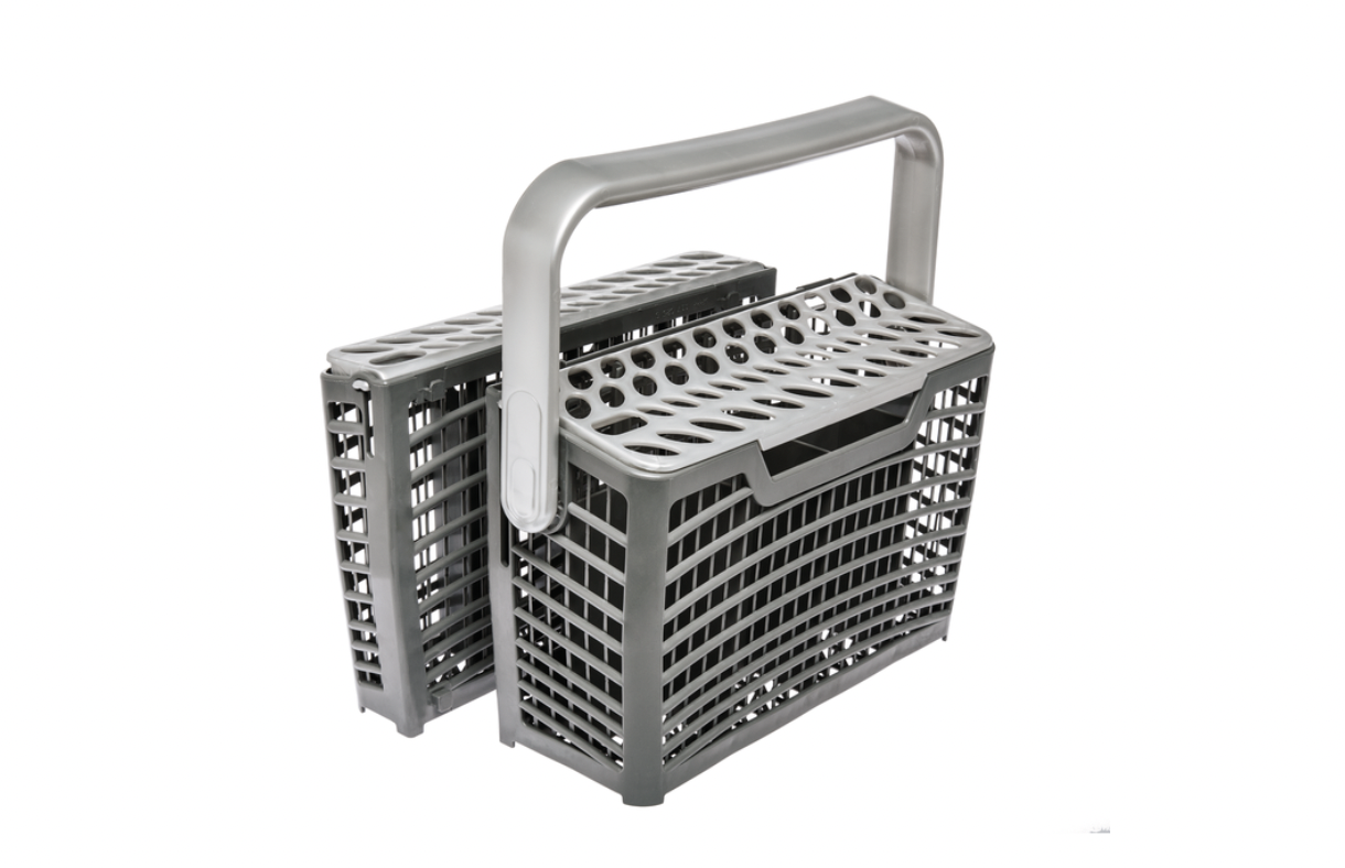Panier à couverts conçu pour le confort et une utilisation optimale. Le panier a une poignée qui se replie et à distance du bras d'aspersion. Compartiments modulables pour maintenir les couverts séparés pour un meilleur nettoyage.