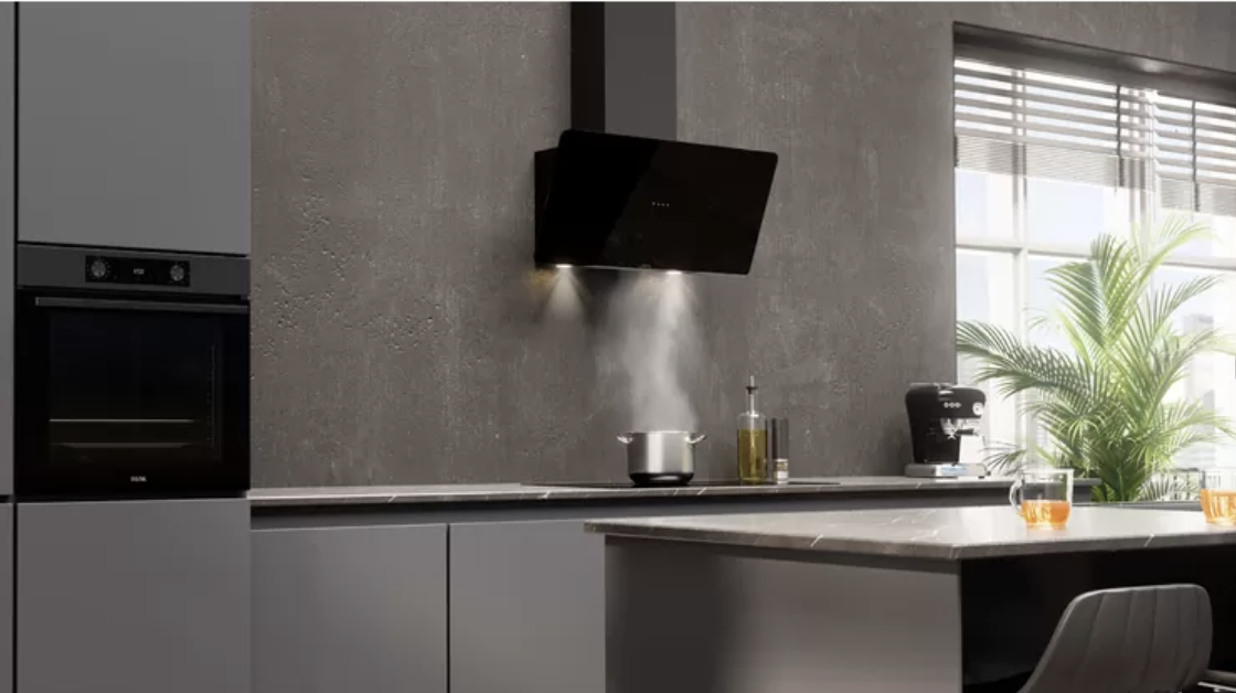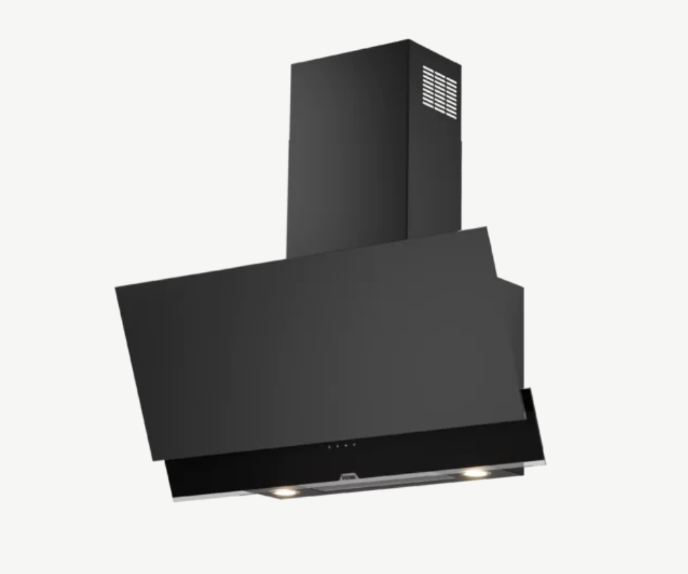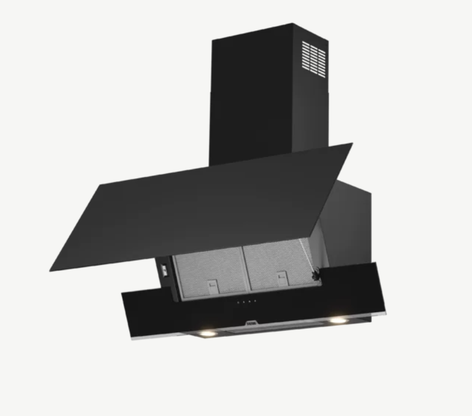réalisée en noir mat avec panneau frontal en verre noir mat