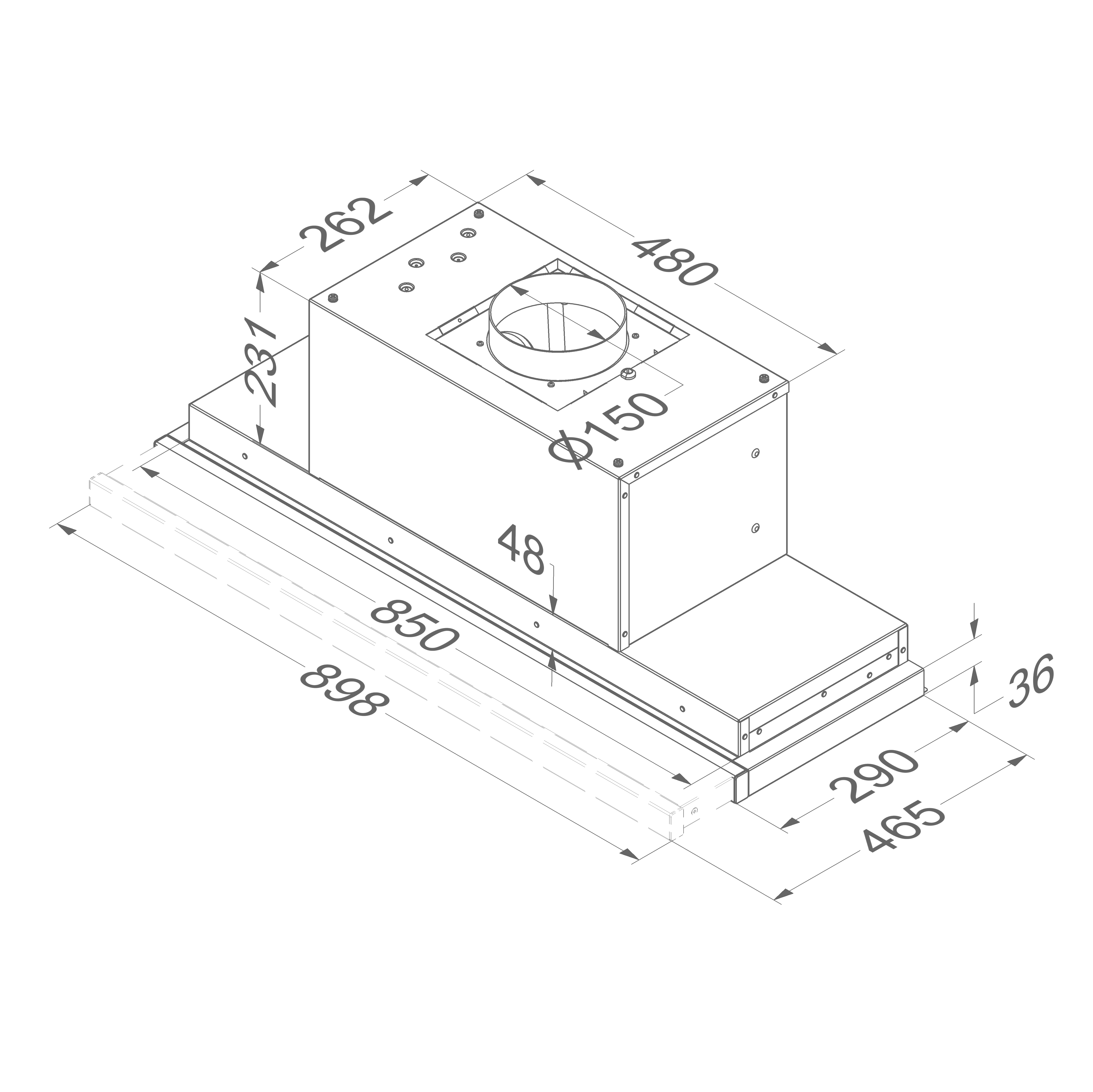 Dimensions de la découpe d'encastrement (LxP)(mm) x Dimensions minimum de l'armoire (LxPxH) (mm) 900 x 280 x 300