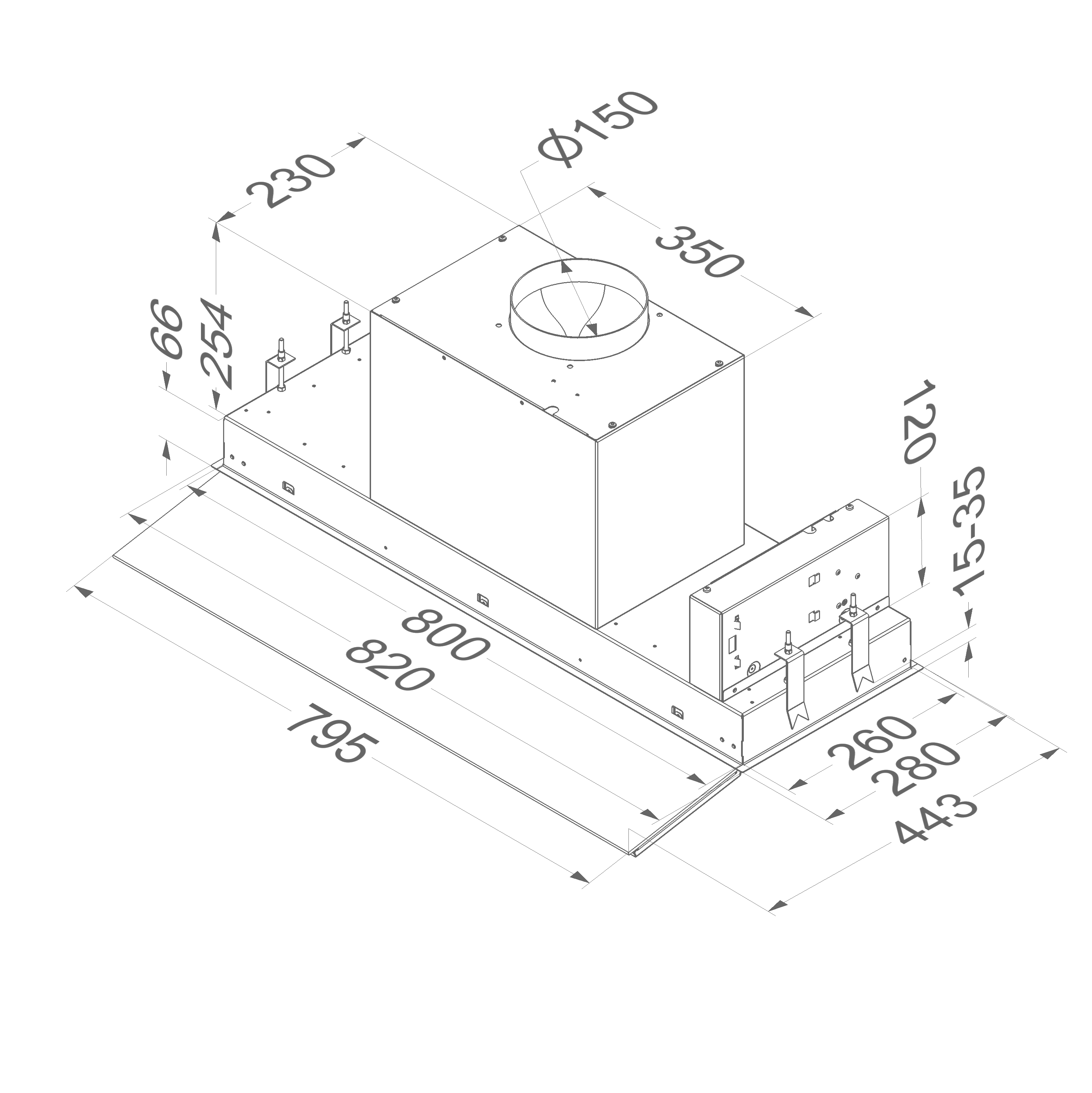Dimensions de la découpe d'encastrement (LxP)(mm) 805 x 265