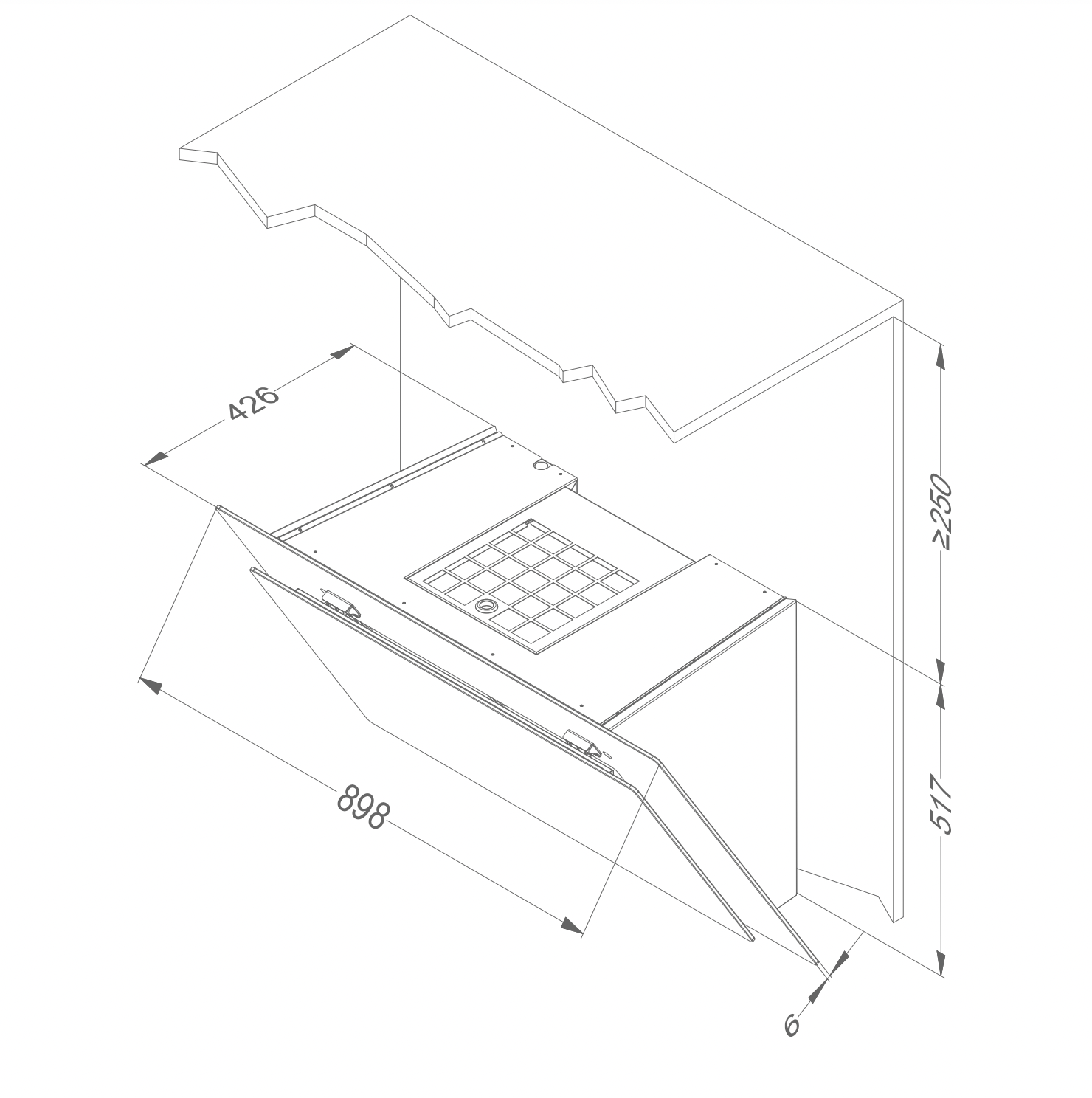 Dimensions du produit avec evacuation (LxPxHmin-Hmax) (mm) 898 x 426 x -