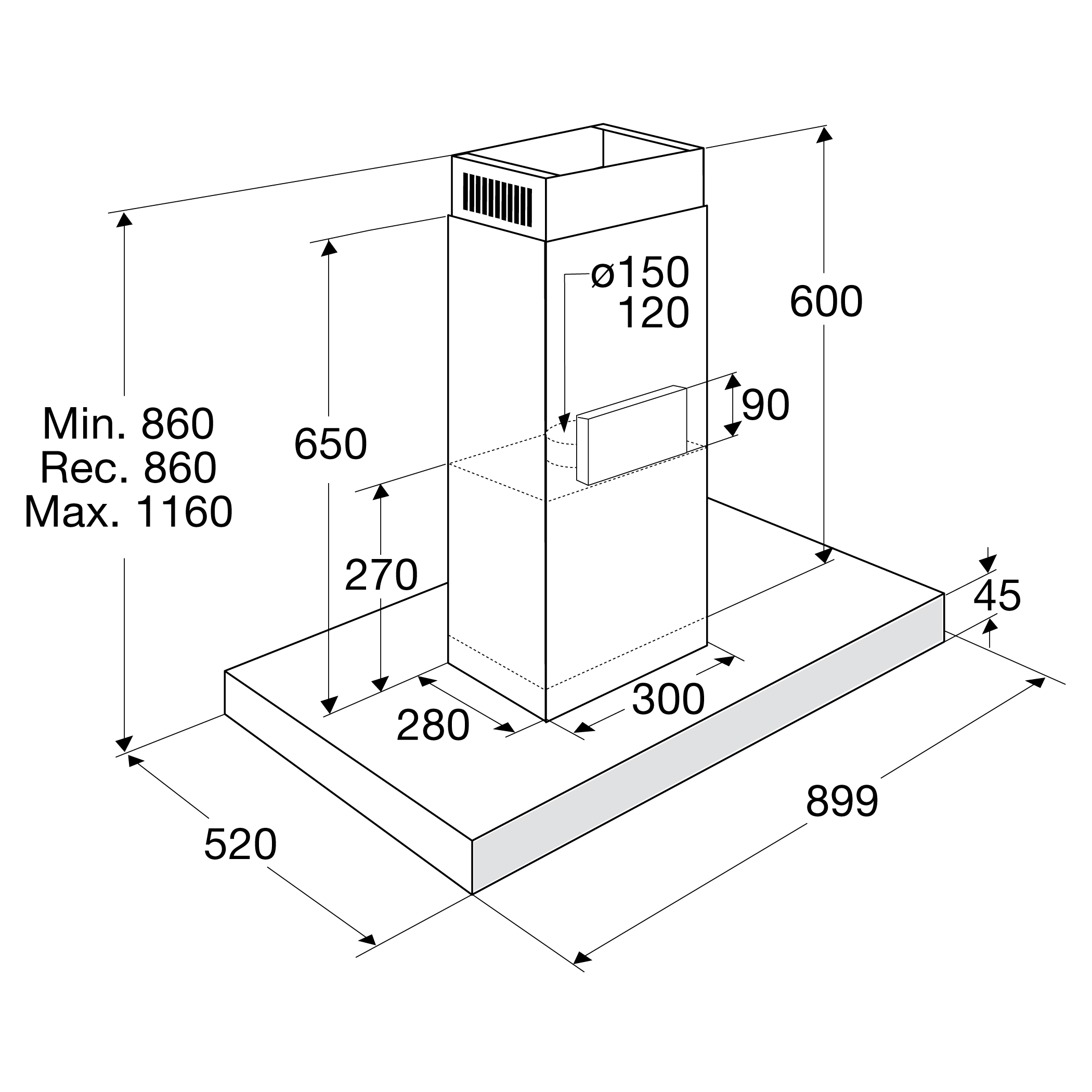 Informations sur le produit "PELGRIM BEGA970MAT hotte îlot - 90cm"